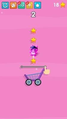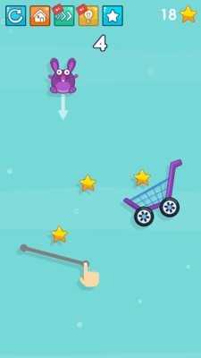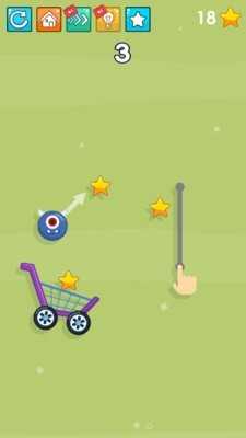 2、只要你能够让小星星成功从反弹线上,弹到购物车里就成功了。