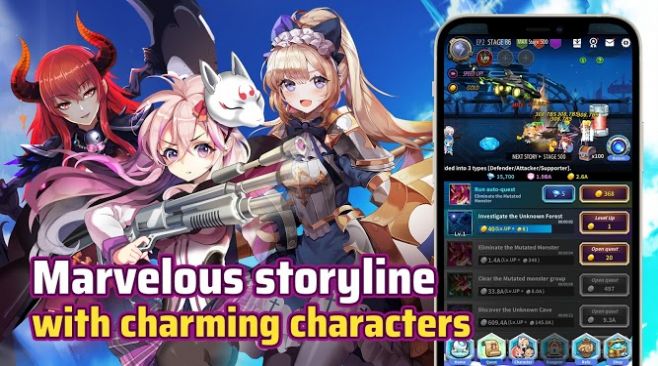 3.培养自己喜欢的少女角色,组建属于你的战斗阵容,以放置战斗玩法为主。