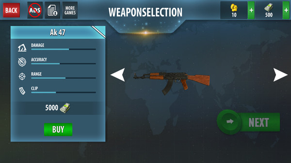 1.丰富的枪械可以自由的挑选,除了大型的火箭筒带不进去,狙击,冲锋枪等等都可以使用。