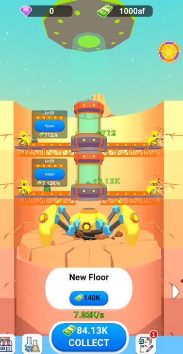 3、加强你的采矿工具,升级你的小型机器人,体验不断进步的乐趣。