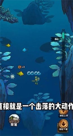 2、在经典的动画风格中,还可以对抗各种海洋生物,你潜入海洋深处。