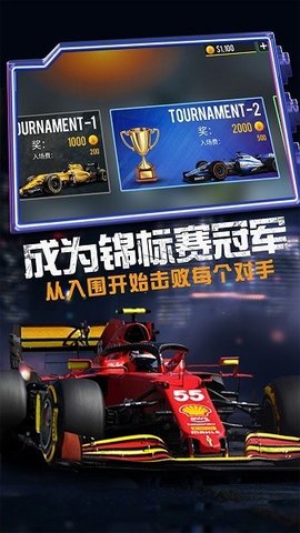 2、进入比赛后,玩家需要操控车辆,在不同的赛道中比赛,赢得比赛即可获得游戏金币。