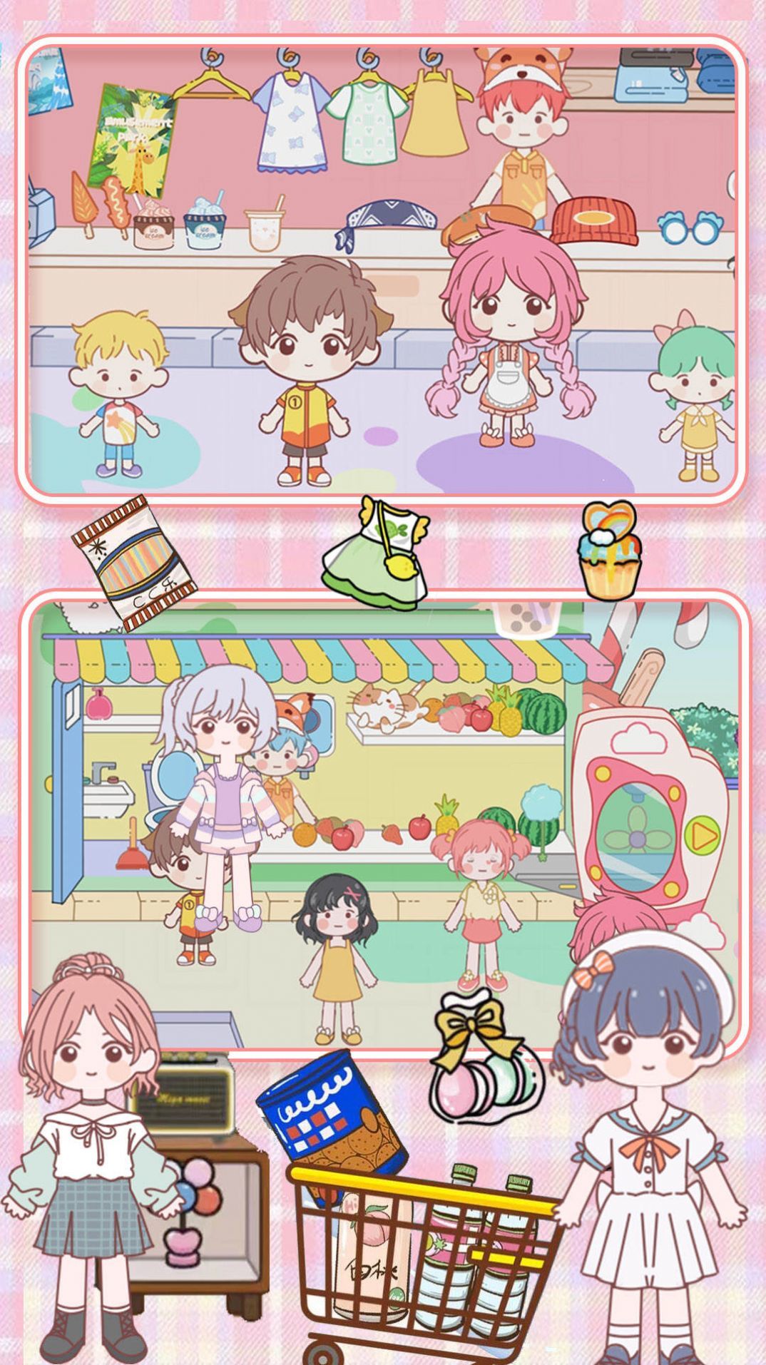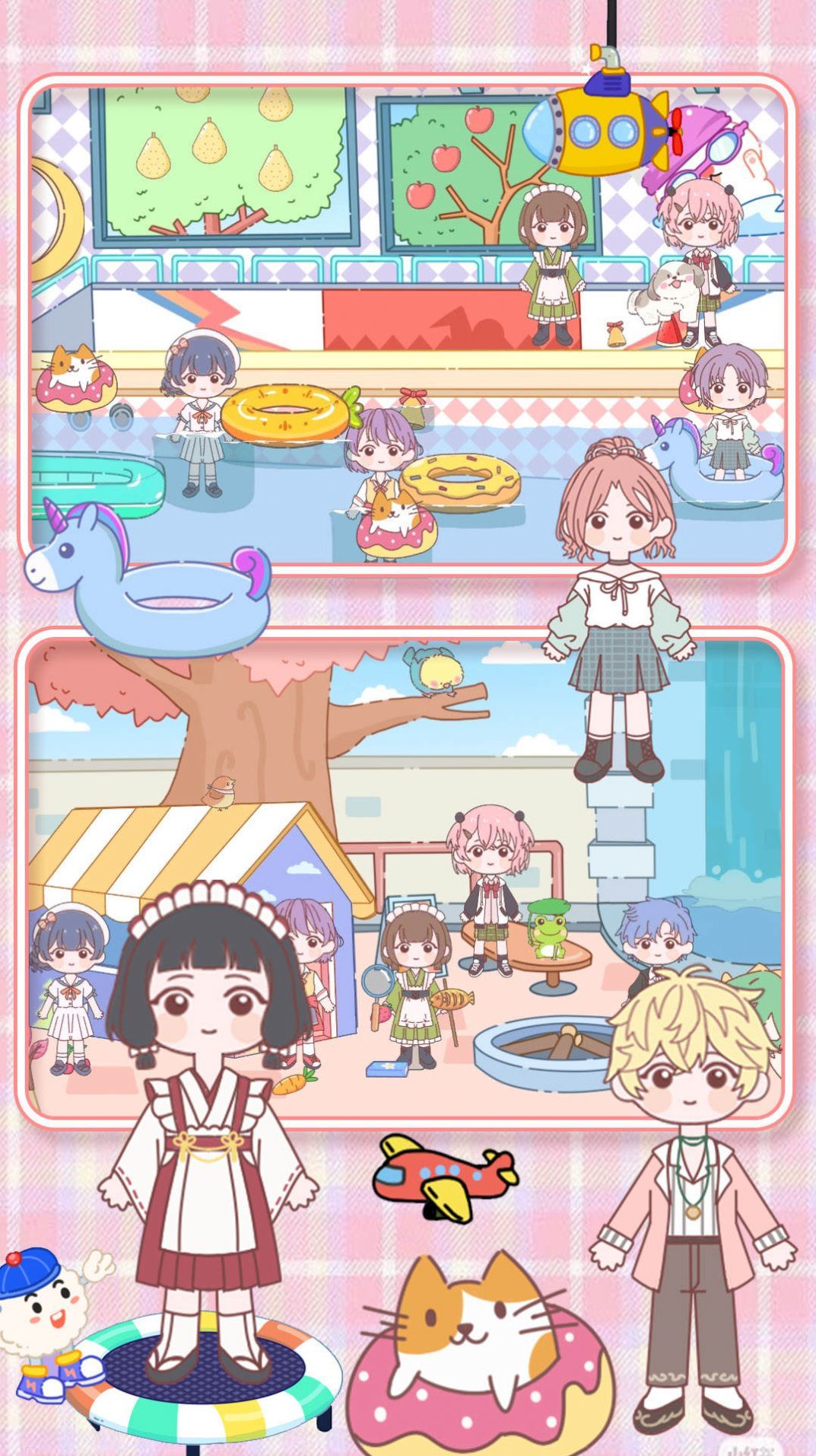有一些可爱漂亮的服装,可以逛街等等,功能非常齐全。