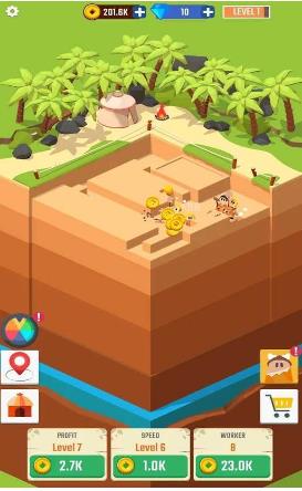 1.在您越来越深入地挖掘过程中,控制您的工人,发现巨大的房屋!