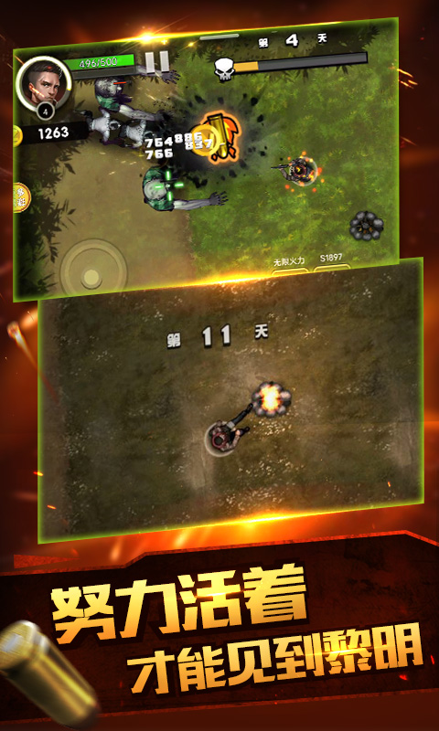 2、到处都是丧尸的涌入,拿起强大的武器开始战斗,击败所有的敌人升级。