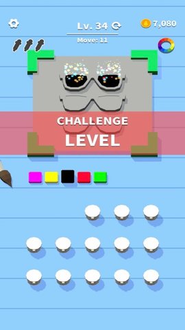 2、规则简单:完成颜色方块填充即可过关,难度根据关卡等级逐渐上升。