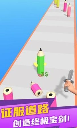 宝剑熔合是一款非常解压的手机跑酷游戏,玩家们要在这里控制自己的大宝剑进行各种跑酷赛道的砍伐,消灭各种地图上的障碍物,游戏的障碍物种类非常的多样,有木头、铅笔、甘蔗等,你在这里挥舞你的大刀切割它们非常的爽,非常的解压,值得玩家们下载体验,还有更多的道具强化功能等你。