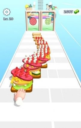 吐司制作跑是一款非常好玩的美食制作跑酷游戏,在这里制作汉堡全靠天意,玩家们要控制你们的汉堡来进行关卡跑酷挑战,赛道上会有非常多样的选择机制,各种事物的添加,各种调味品的投放都由你自由的选择,最后你制作出来的汉堡到底是好吃还是难吃就交给终点的裁判员吧,赶快下载这款趣味的跑酷游戏吧。