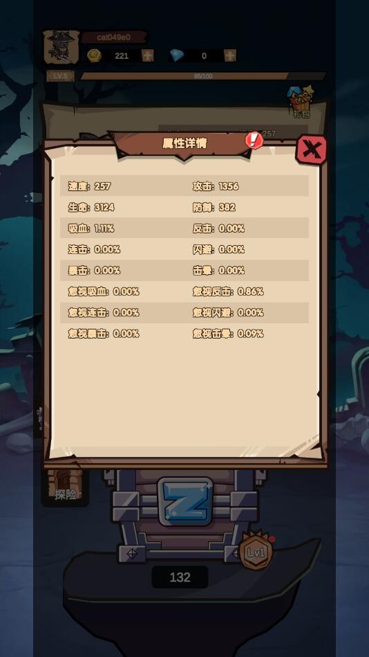 2、点击获取宝箱不断升级提升角色属性完成关卡挑战。