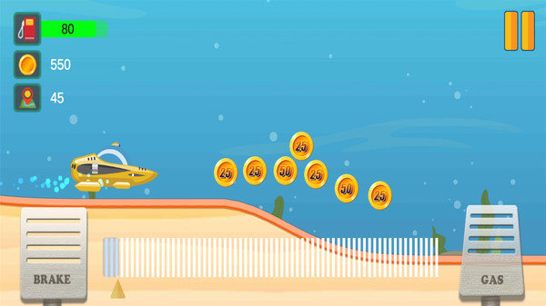 潜水艇爬坡是一款有趣的手机水下冒险闯关游戏,这款游戏采用潜水艇的方式,玩家们要控制你的潜艇在水下进行闯关挑战,玩家们需要控制你的潜艇前进,获取金币,同时要控制好油门跟刹车,别一下跑过头掉到深渊里面去,游戏拥有最休闲趣味的玩法,值得玩家们下载体验。