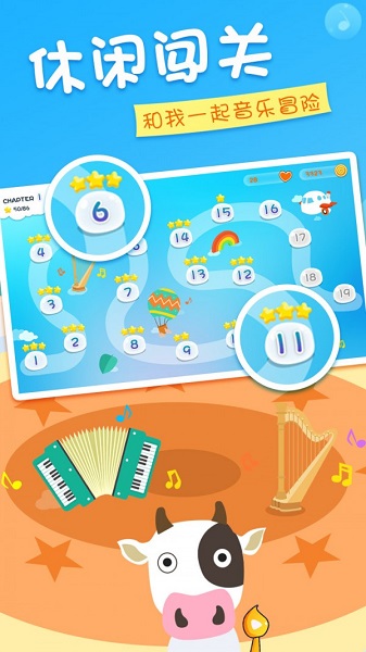 音乐我最牛是一款非常好玩的手机音乐闯关游戏,这款游戏采用非常可爱的小奶牛作为游戏的主人公,玩家们将要控制它进行音乐闯关挑战,游戏拥有非常多样的关卡设计,各种不同类型的关卡给你全新的游戏体验,游戏还拥有特别多的高质量音乐等你享受,适合多年龄段的玩家们在线游戏,值得下载体验。