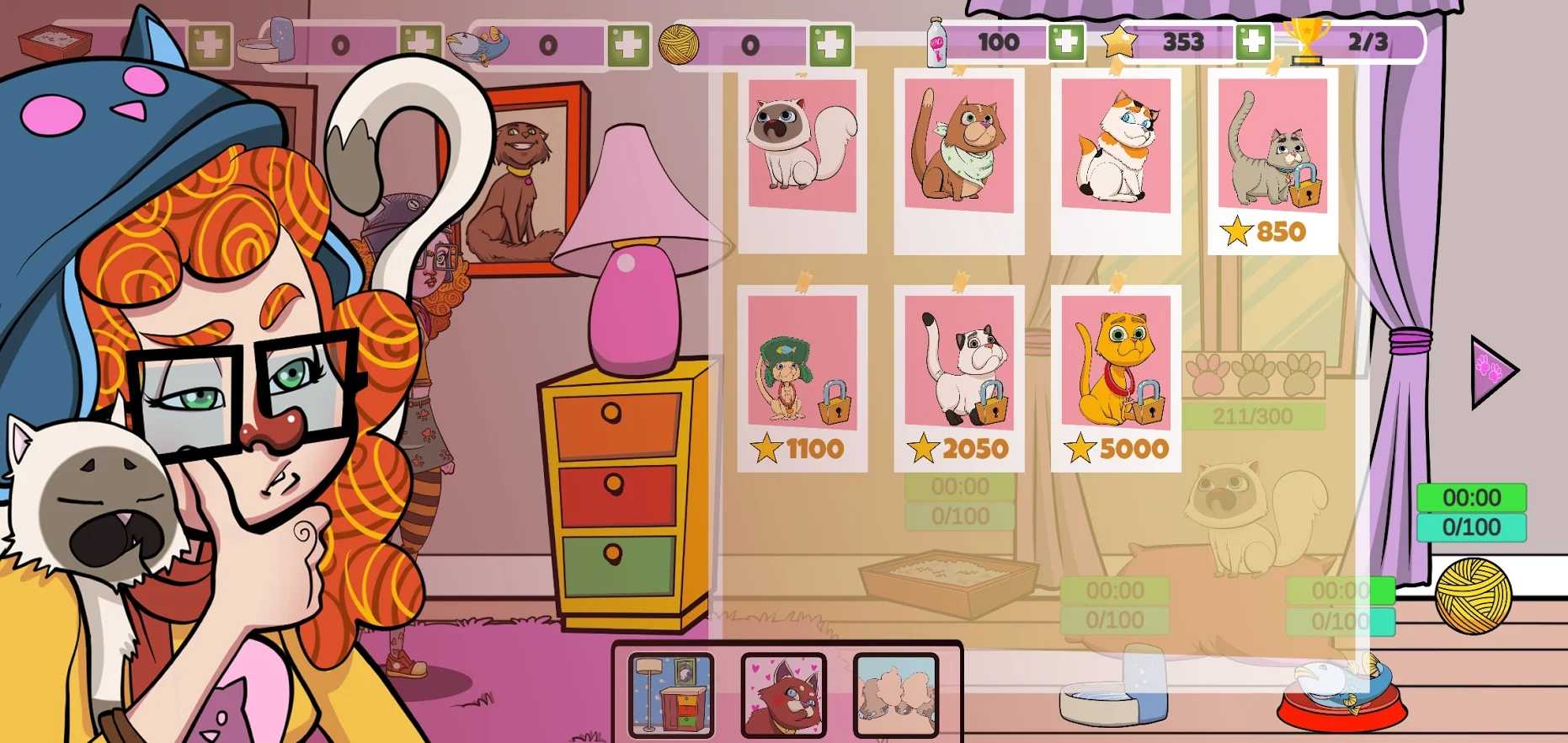 疯狂的猫女士是一款治愈系宠物玩法的模拟养成类型的游戏,游戏内的主角将会在自己的家中收养的可爱的小猫宠物,并对它进行百般呵护,完成任务来解锁各种道具服饰,为你的小猫装扮上,使其能够变得更加的漂亮美丽,让你也能够从中感受到无尽的欢乐,感兴趣的小伙伴快来下载游戏体验吧。