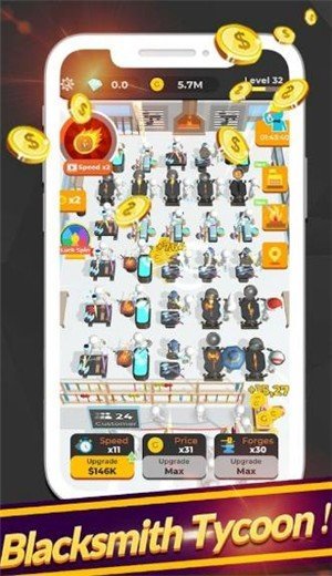 闲置铁匠铺刀剑兵器是一款趣味经营游戏游戏中玩家要去为很多的客人去打造兵器游戏中玩家经营着一家兵器店,上好的材料才能打造出最好的兵器,全新的放置挂机系统可以去体验,打造成让顾客满意的兵器,喜欢的玩家快来下载体验吧。