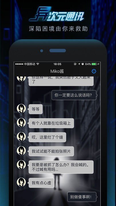 异次元通讯官网版是一款充满冒险与刺激的即时通讯娱乐手游,不仅画面精美,题材新颖,以丰富的剧情,独特的实时通讯模式,全方位讲述主角在开启逃亡过程中,仅能通过通讯功能跟你取得联系的对话方式来逐步了解事件的来龙去脉,帮助主角求生的冒险故事之旅。