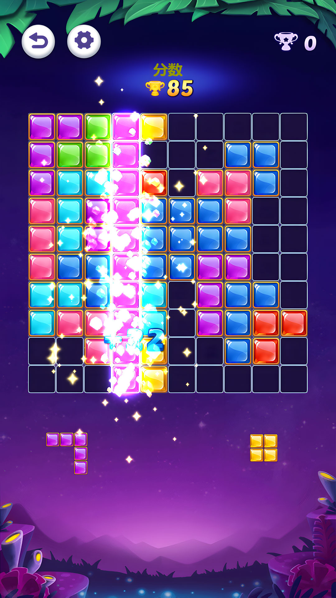 2、当一个完整的方块被放置时,它就会消失,每消除一行就会得到一定的分数。