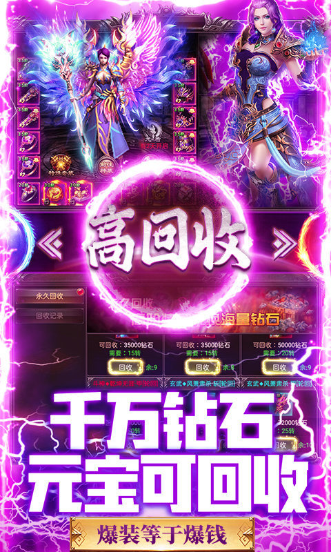 游戏内回收装备得元宝,一夜暴富不是梦,进游戏激活终身返利,每天都送代金券,人人保送VIP。