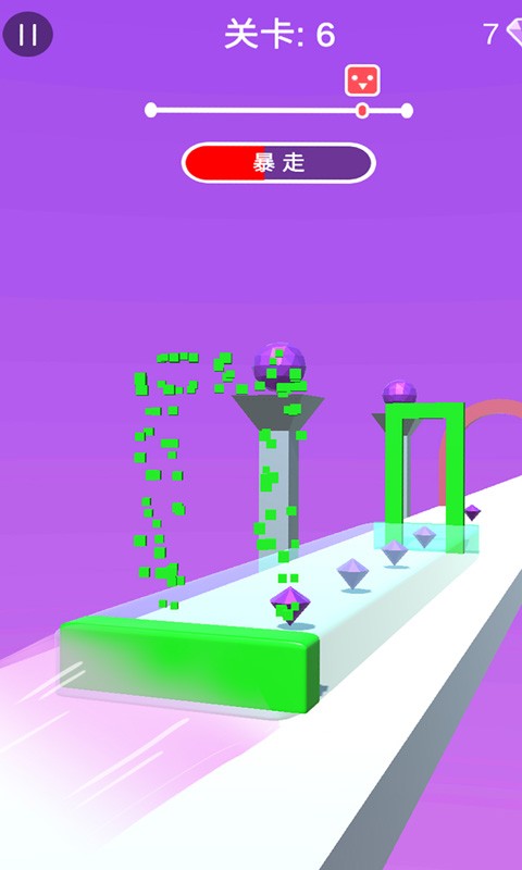 1、是一款卡通风格的休闲跑酷游戏,游戏中的砖块有不同的形状。