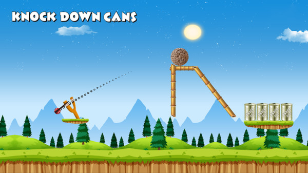 2、玩家可以直接射击,拿起自己的球,玩家需要使用一个大弹弓来击倒远处的罐子!