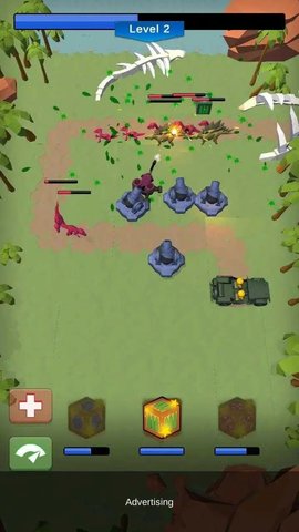 1、自如感受熟悉的塔防游戏,准确投掷炮塔,对抗恐龙;