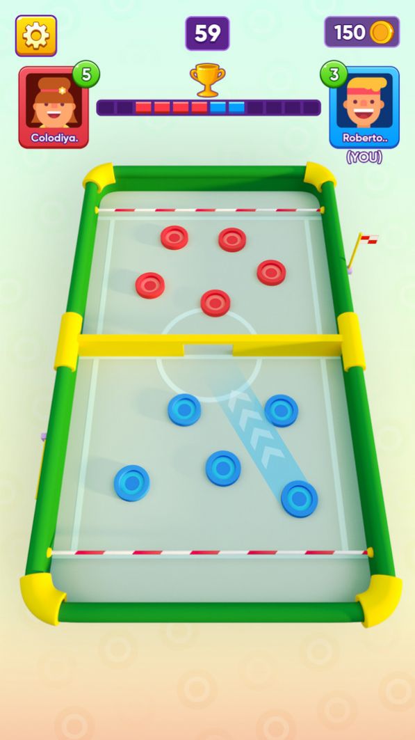 双人圆盘是一款非常趣味的手机竞技游戏,这款游戏的玩法是在游戏当中进行桌球圆盘对战,玩家们要将自己的所有颜色圆盘送多对方的领地当中就能够获得游戏的胜利,非常的好玩有趣,游戏能够与你的好友一起在线游戏,体验双倍的游戏快乐,拉进你与好友之间的亲密度,赶快下载吧。