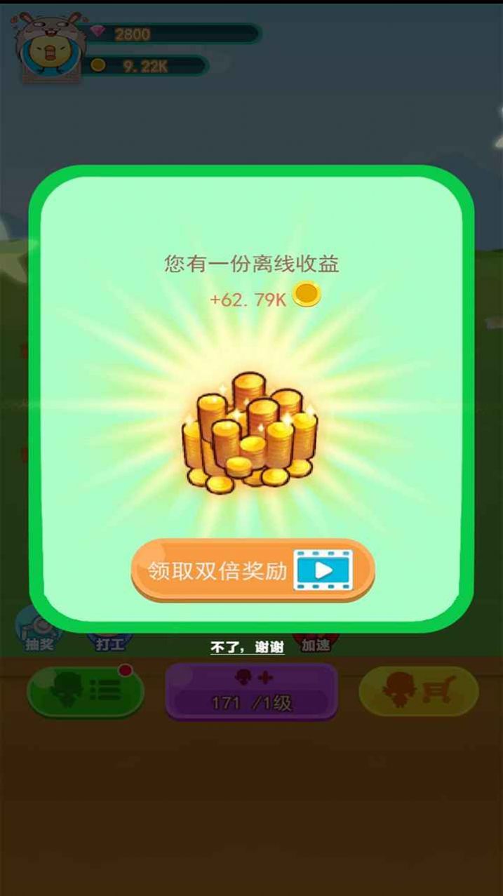 1、赚到更多金币你也可以通过看视频来获得10倍奖励。