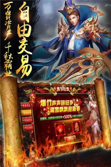 同时将自由PK爆装,打boss全屏掉宝,战法道三职业,行会争夺战,自由交易赚元宝,万人同屏攻城战等。