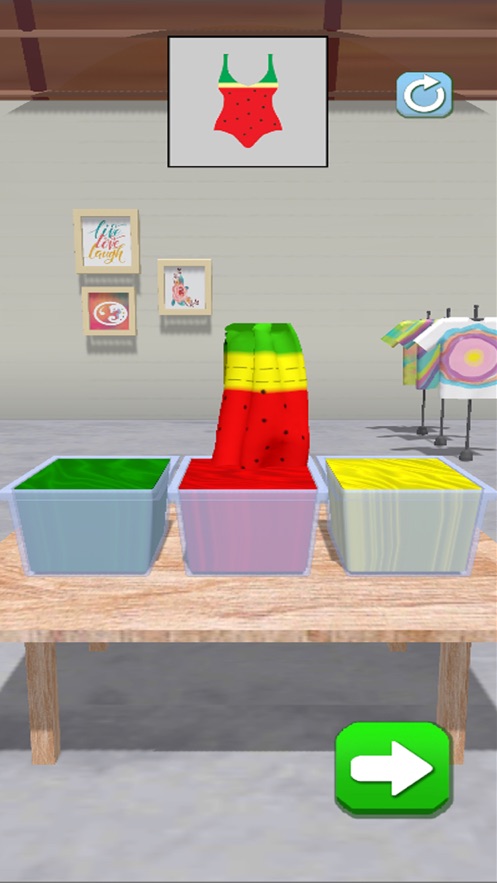 3、玩家需要像扎染技术中那样,将不同的色彩混合起来,染出各种各样精美的衣服;