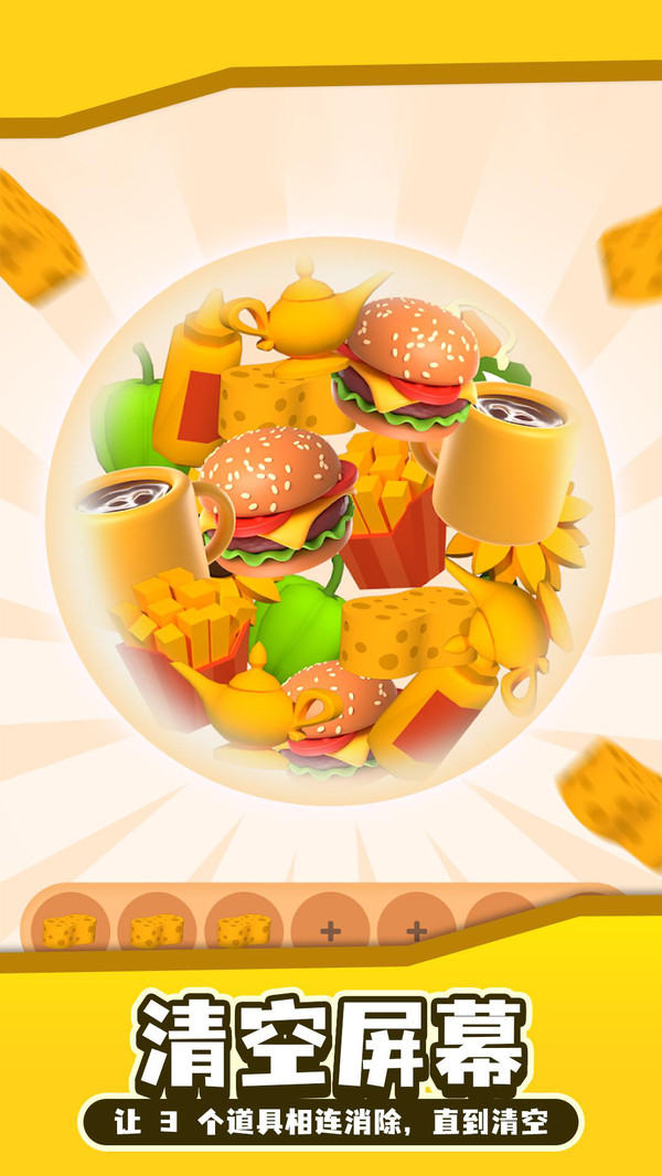 1、有趣的3d游戏,清除屏幕上的物品,旋转球找到相同的物品。