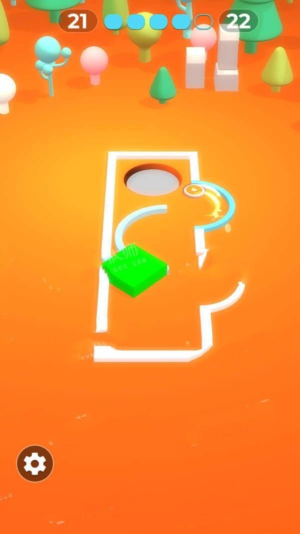 3.在一次又一次的试探之中,摸清规律找好角度,以精准力度尝试一杆进洞吧!