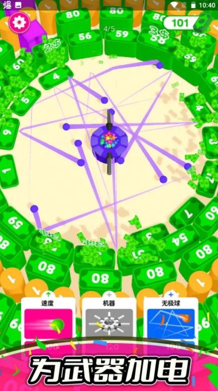 2.合并武器和升级它们,以提高射击功率和效果,并通过射击立方体获得金币。