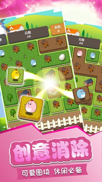 3、新的小可爱在等着你呢!带领各种可爱的小鸡为你建造一个小镇。