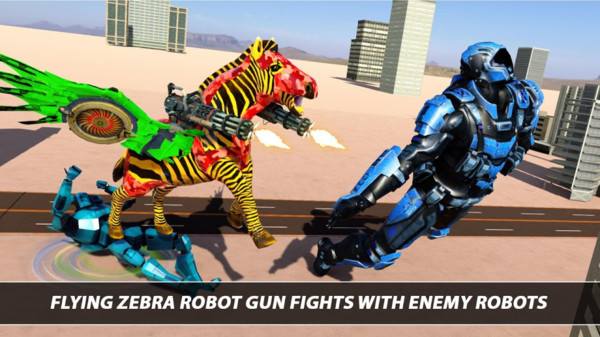 1.3d逼真的游戏画面,各种不同的城市场景,驾驶未来飞马机器人和犯罪分子进行激烈的格斗。
