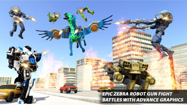 1、在未来的飞马机器人格斗游戏,你可以追逐罪犯并摧毁他们。
