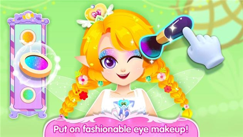 先给森林公主选个美瞳,挑蓝色还是紫色呢?再画上blingbling的眼影,哇!公主的眼睛变得闪亮亮!还有各种色号的口红,珊瑚色、桃粉色……真好看!