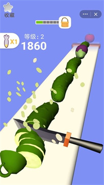 2、游戏采用简单的操作方式,玩家只需要滑动手指,调整刀的位置和速度,即可完成切菜过程。