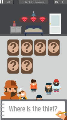 谁是小偷是一款非常有趣的休闲益智类游戏,游戏中玩家将扮演一名侦探,通过事发现场的一些蛛丝马迹,找到各种有利的线索,指出真正的犯人,小偷会随意变换位置,玩家需要死死盯住小偷的动向。