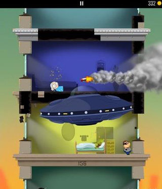 躲避激光枪。如果老爸被激光枪打到一次,身体就会变小,破坏力也随之下降,需要跳跃两次才能破坏楼层。